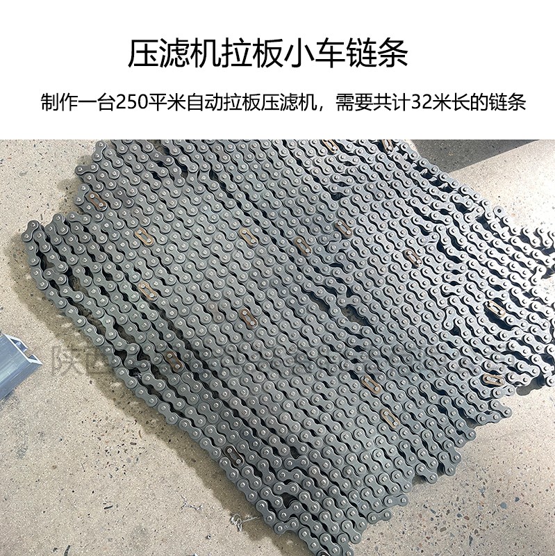 一臺250平米自動拉板廂式壓濾機,需要32米鏈條。工2根,長度均為16米。